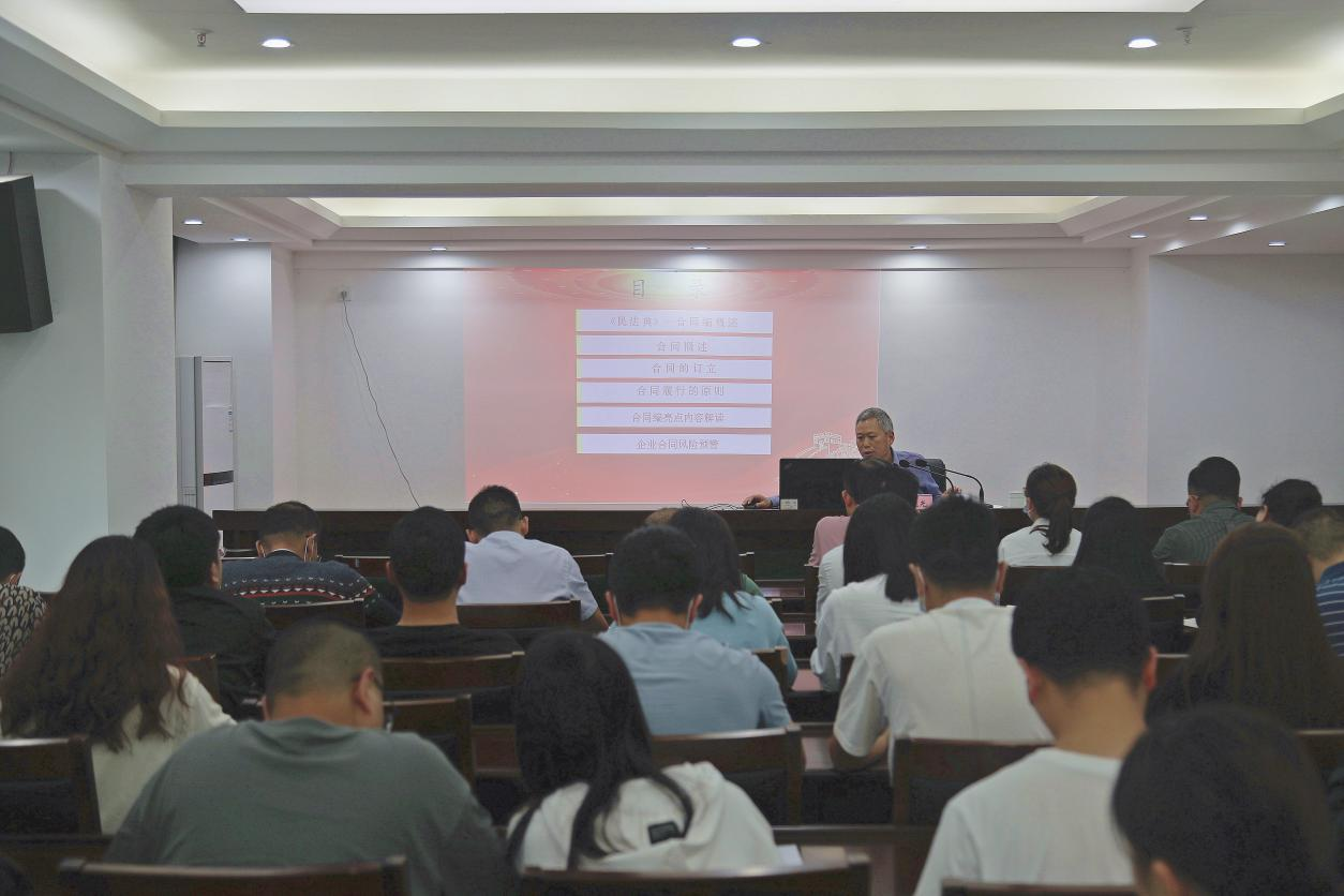 為做好企業(yè)普法宣傳工作,廣泛開展法律進企業(yè)法制宣傳教育活動,培養(yǎng)員工學法、懂法、用法法治思維,2022年5月25日下午,巴中發(fā)展控股集團舉辦了法律培訓,特邀請巴中市律師協(xié)會會長、四川砝鼎律師事務所主任朱曉光作專題培訓。集團總部員工,下屬企業(yè)風控負責人、法務、業(yè)務工作人員共計50余人參加本次培訓。培訓會議指出,現(xiàn)今契約文化的重要性不言而喻,合同是保障企業(yè)權利的命脈,要推動企業(yè)法律工作向管理型轉變,由事后救濟型向事前防范、事中控制型轉變,努力做好風險防控。