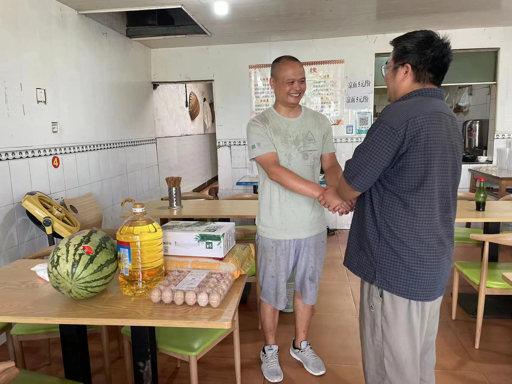 公司相關(guān)負(fù)責(zé)人同退伍老兵親切交談,仔細(xì)詢(xún)問(wèn)他們的生活、工作及身體情況,對(duì)退伍老兵及老兵家屬的付出和貢獻(xiàn)表示感謝。慰問(wèn)團(tuán)一行向他們送上米、油、牛奶等生活用品并致以節(jié)日的問(wèn)候和祝福。
